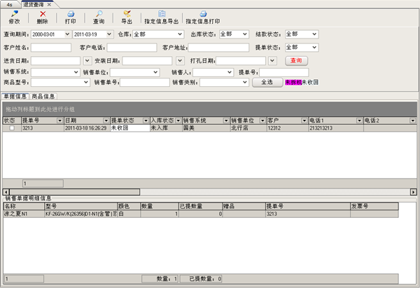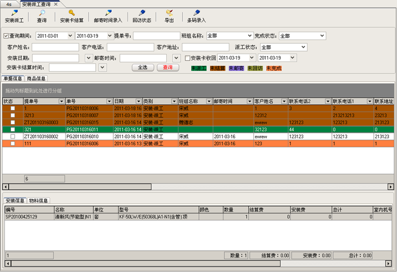 | 空調4S店管理系統(tǒng)一款專門集空調銷售、安裝、維修及配件于一體的軟件,軟件操作簡單方便,界面美觀大方,可方便地幫助您對空調4S店進行管理,自動統(tǒng)計空調及配件的庫存數(shù)量等。該系統(tǒng)在功能方面主要包括了:采購管理、銷售管理、商品倉庫、配件倉庫、售后服務、報表管理、財務管理、物流管理、基礎設置、其他設置幾部分。 |