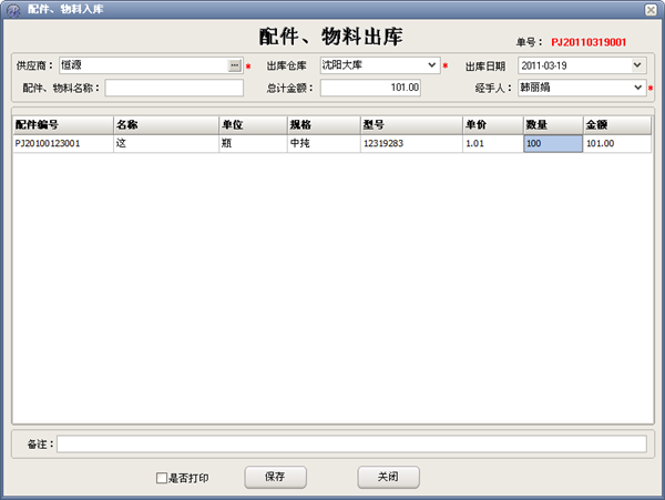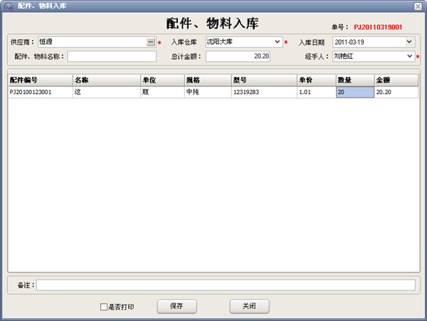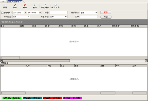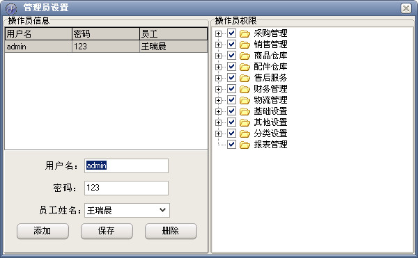 說明:系統(tǒng)登錄,主要用于控制不同權限的人登錄軟件,軟件初始默認管理員為Admin密碼為123。 二.主界面 說明:主界面當中的業(yè)務操作,主要用于日常管理操作,基本占據(jù)了日后軟件應用的大部分操作??梢赃M行賓客開房,增加消費,續(xù)房費,結賬等操作。頂部是軟件所有操作的導航。左側可以顯示狀態(tài)信息,及相應提醒。 三.采購管理 提貨證明 證明查詢 入庫查詢 庫存查詢 庫存調撥 調撥查詢 說明:業(yè)務主要操作包括賓客入住后的各種操作處理。 四、銷售管理 商品銷售 銷售查詢 銷售退貨 退貨查詢 五、商品處理 入庫單(進) 銷售出庫 打印出庫單 出庫查詢 庫存盤點 盤點查詢 報損報溢 報損報溢查詢 入庫查詢 調撥查詢 ![]() 退貨入庫 六、配件倉庫 配件入庫 配件出庫 配件出入庫查詢 配件庫存調撥 配件調撥查詢 配件庫存盤點 配件盤點查詢 配件報損報溢 配件報損報溢查詢 配件庫存查詢 ![]() 七、售后服務 打孔派工單 打孔錄入 打孔派工 移機錄入 移機派工 ![]() 維修錄入 ![]() 維修派工 ![]() 派工查詢 ![]() 八、報表管理 物流報表 ![]() 九、財務管理 供應商賬款 ![]() 銷售應收賬款 ![]() 物流賬款 ![]() 結算審核 ![]() 財務審核 ![]() 提貨證明審核 ![]() 庫存調撥審核 ![]() 退貨審核 ![]() 十、物流管理 物流費用 ![]() 十一、基礎設置 部門設置 ![]() 員工設置 ![]() 客戶設置 ![]() 倉庫設置 ![]() 供應商設置 ![]() 安裝費設置 ![]() 操作員設置 ![]() 售后組設置 ![]() ![]() 配件設置 ![]() 物流設置 ![]() 銷售設置 ![]() 銷售類型 ![]() 提貨類型 ![]() 備份時間設置 ![]() 十二、其他設置 日常費用 ![]() 日志查看 ![]() 數(shù)據(jù)初始化 ![]() 導出數(shù)據(jù) ![]() |